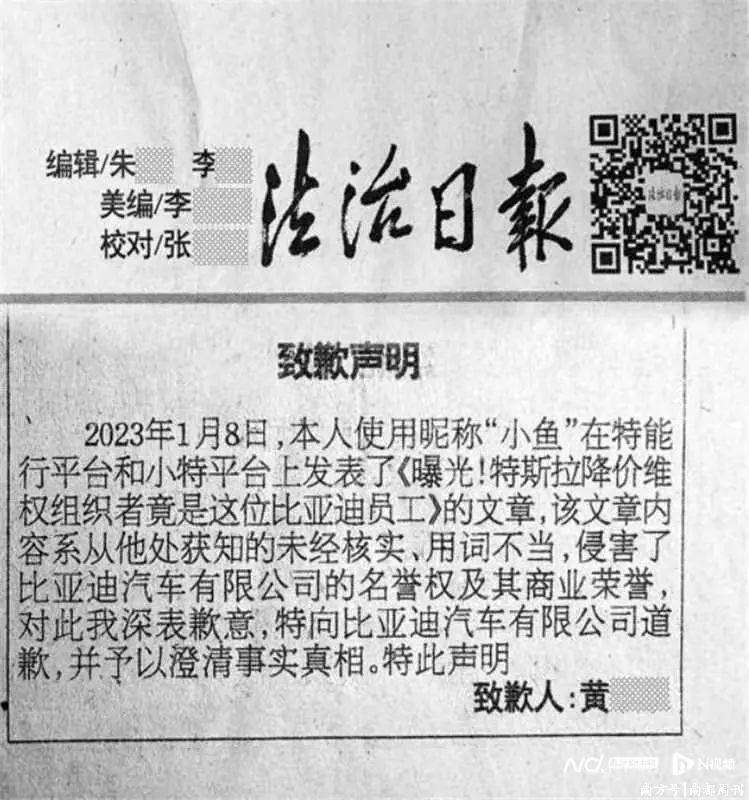 比亚迪方面先容,黄某已于近日刊文,就此前发布不当言论侵害公司名誉权事宜公开致歉,并支付补偿金。